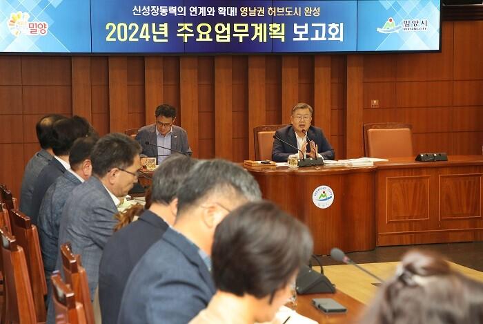 | ▲ 박일호 밀양시장이 4일 시청 소회의실에서 개최된 2024년 주요업무계획 보고회를 주재하고 있다. |