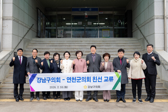 [시민일보 = 이대우 기자] 서울 강남구의회(의장 이호귀)가 최근 경기 연천군의회를 방문해 지방의회 간 우호 증진 및 공동발전을 위한 친선교류 강화를 논의했다.