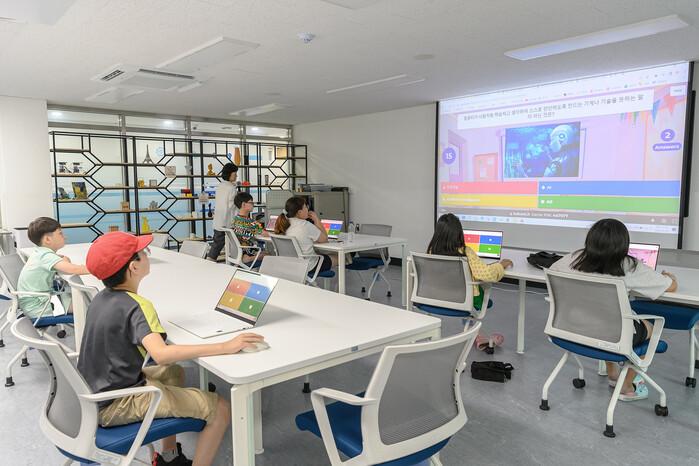 | ▲ 초등학생을 위한 ‘AI 아트로 떠나는 코딩여행’ 수업. (사진=양천구청 제공) |