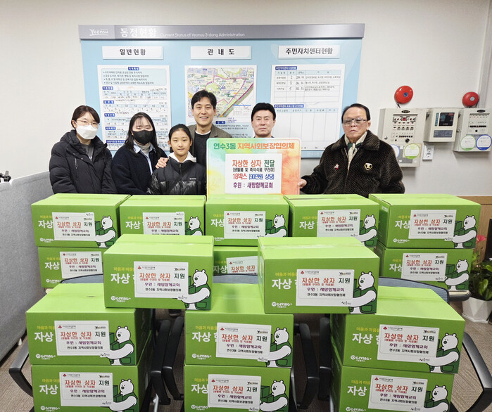 [인천=문찬식 기자] 인천 연수구 연수3동 지역사회보장협의체(위원장 윤성연·김재식)는 지난 19일 새맘함께교회(담임목사 김문길)로부터 생필품 꾸러미와 식료품으로 구성된 ‘자상한 상자’ 18박스를 전달받았다.