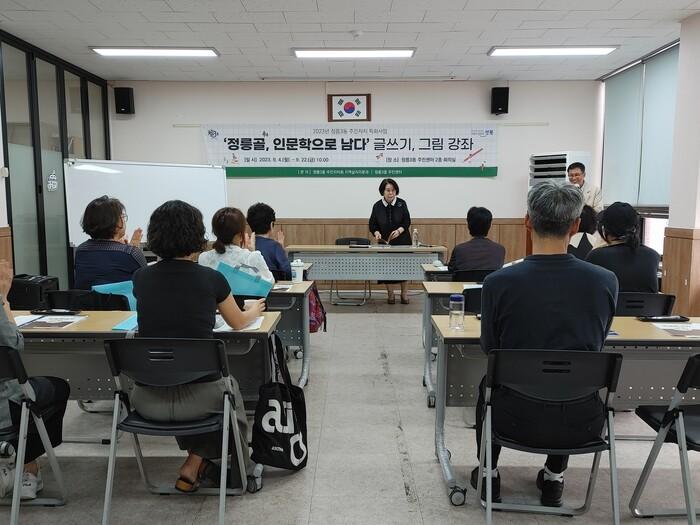[시민일보 = 홍덕표 기자] 서울 성북구(구청장 이승로) 정릉3동 주민센터에서 최근 정릉3동 주민자치회 지역살리미 분과 주관으로 ‘정릉골, 인문학으로 남다’ 무료 글쓰기 강좌를 진행했다.