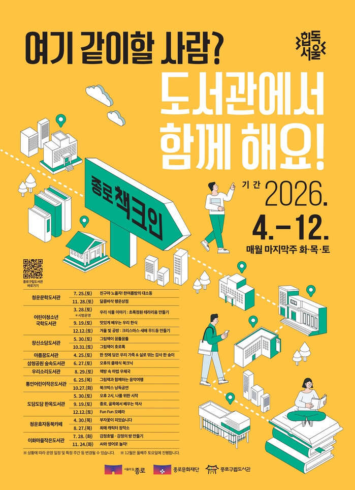 세부 일정 및 신청 방법은 종로구립도서관과 종로문화재단 홈페이지에서 확인하면 된다.