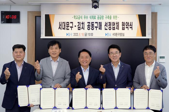 [시민일보 = 홍덕표 기자] 서울 서대문구(구청장 이성헌)는 지역내 학교에 안전한 학교급식 식재료를 공급하기 위해 최근 우수 김치 공동구매 업체를 선정한 뒤 협약을 맺었다고 23일 밝혔다.