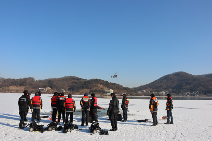 앞서 구조대는 지난 1월 21일부터 23일까지 3일간 거북섬 소재 파라다이브 다이빙장에서 사전훈련을 실시했으며, 27일에 물왕저수지에서 현지 적응훈련을 진행했다. 훈련은 드론을 활용한 현장 탐색과 동계 수난사고 대응 능력 향상에 중점을 두고 진행됐다.