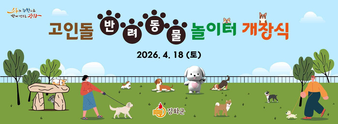 [인천=문찬식 기자] 인천 강화군(군수 박용철)은 오는 4월 18일 반려동물과 사람이 함께 어울릴 수 있는 ‘고인돌 반려동물 놀이터’를 개장하고, 이날 오전 10시 개장식을 개최하며 본격적인 운영에 들어간다.