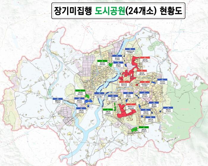 | ▲ 장기미집행 도시공원 24개소 현황도 / 광주광역시 제공 |