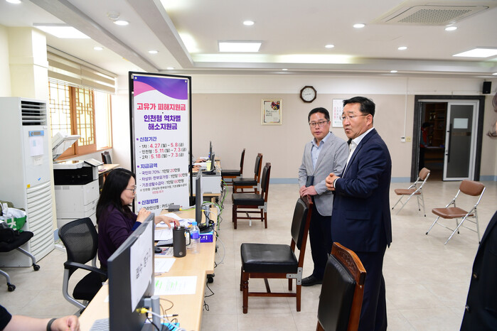 [인천=문찬식 기자] 인천 강화군이 ‘1차 고유가 피해지원금’ 신청이 진행 중이다. 지난 4월 24일 박용철 강화군수가 6‧3 전국동시지방선거를 위해 예비후보 등록한 상황에서 김학범 강화군수 권한대행 부군수가 지난 28일 현장점검을 나서는 등 밀착 지원에 나섰다.
