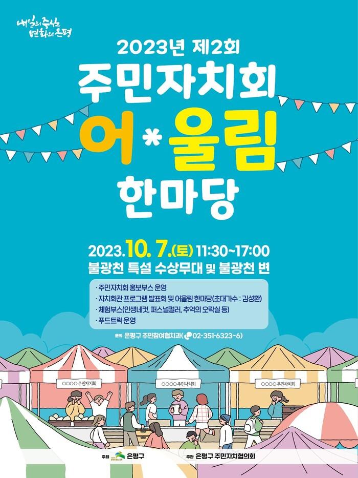 [시민일보 = 이대우 기자] 은평구(구청장 김미경)가 오는 10월7일 제2회 ‘주민자치회 어울림 한마당’ 행사를 불광천 수상무대와 산책로에서 개최한다.