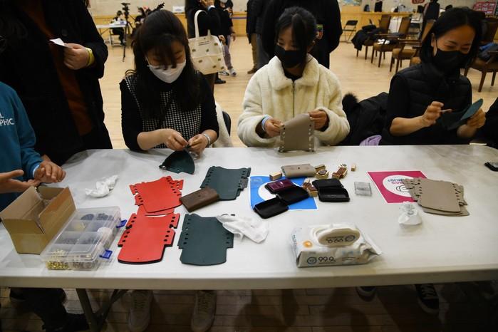 서울 노원구마을공동체지원센터는 최근 노원마을공동체 네트워크 한마당 '2021 더불어숲을 이루자' 행사를 열었다. 사진은 구민들이 가죽공예 체험활동에 참여하고 있는 모습. (사진제공=노원구청)