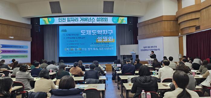 이번 설명회는 인천시청이 주관한 ‘일자리 거버넌스 구축 간담회’와 함께 열려 지역 산업 수요에 맞춘 인재 양성과 안정적인 취업 지원을 위해 지자체·산업계·학교·대학·유관기관 간 협력 구조의 필요성을 공유했다.