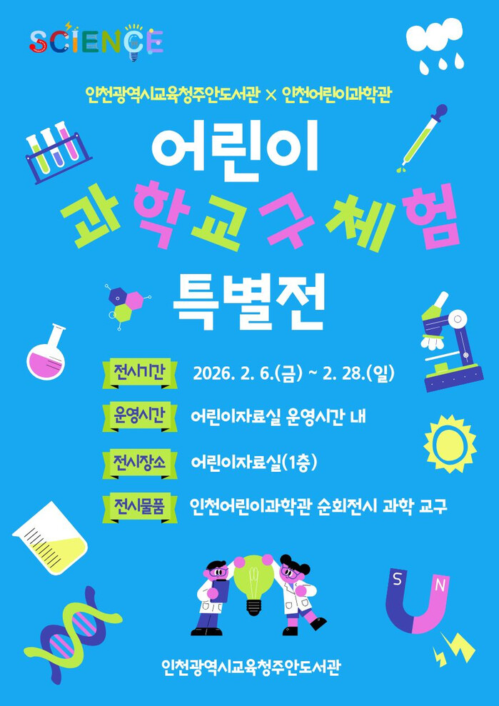 [인천=문찬식 기자] 인천광역시교육청주안도서관(관장 최문정)은 오는 28일까지 어린이자료실에서 ‘어린이 과학교구 체험 특별전’을 운영한다.