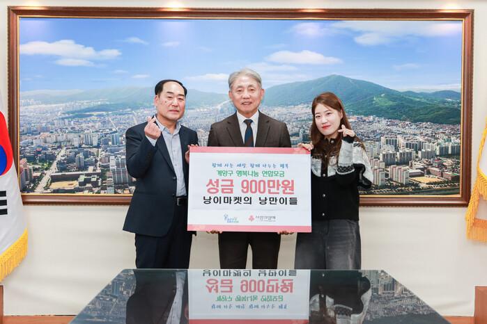 [인천=문찬식 기자] 인천 계양구(구청장 윤환)는 낭이마켓(대표 정수미)이 지역 내 취약계층 지원을 위해 성금 900만 원을 기탁했다고 밝혔다.