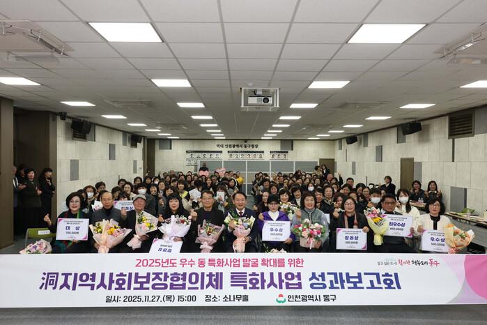 [인천=문찬식 기자] 인천 동구(구청장 김찬진)는 지난 27일 구청 소나무홀에서‘2025년 洞지역사회보장협의체 특화사업 성과보고회’를 개최하고 우수 사업에 대한 시상을 진행했다고 밝혔다.