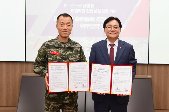 강화군은 3월 31일 오전 10시30분, 해병대 제2사단에서 민북지역 출입통제 체계 개선을 위한 업무협약을 체결했다. 이날 협약식에는 박용철 강화군수와 최영길 해병대 제2사단장이 참석해 협약서에 서명하며 양 기관 간 협력 체계를 공식화했다.