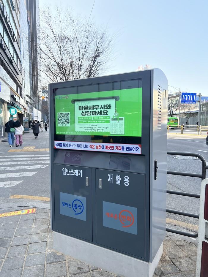 | ▲ 노량진역 3번출구 앞 설치된 동작구 스마트 가로 휴지통. (사진=동작구청 제공) |