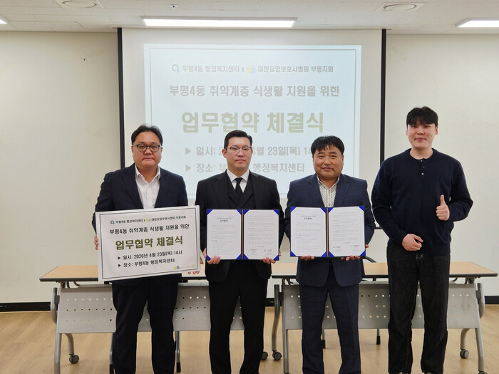 이날 체결한 업무협약에는 부평4동이 추진하고 있는 ‘부4친친 반찬나눔사업’을 확대·운영하는 내용이 담겼다.