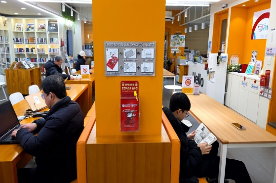 | ▲ 방연마스크 설치 모습(북카페도서관 다독다독 2호점-고분다리시장점) |