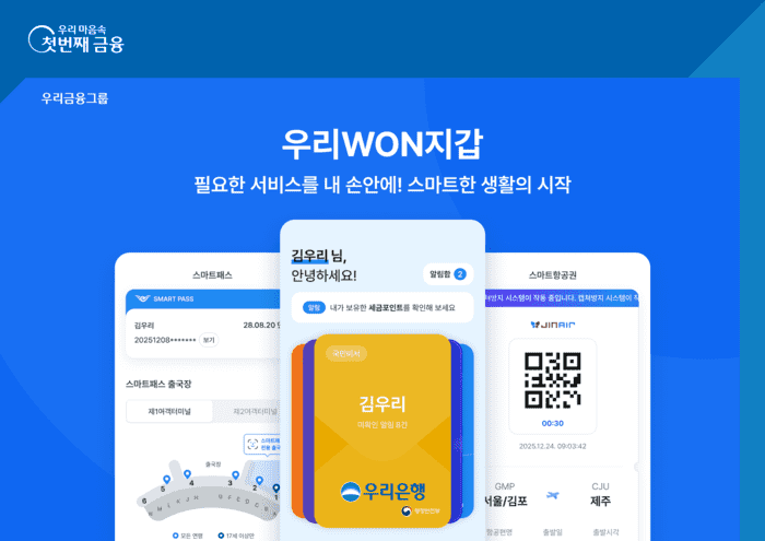 한편, 우리은행은 12월 16일부터 약 한 달간 ‘우리WON지갑’ 신규·기가입 고객을 대상으로 경품 이벤트를 진행하고 있다. 이벤트 참여 고객에게는 추첨을 통해 다양한 경품을 제공하며, 자세한 내용은‘우리WON뱅킹’앱 내 ‘혜택 ‣ 이벤트 ‣ 우리WON지갑 가입하고 연말 선물받기’페이지에서 확인할 수 있다.