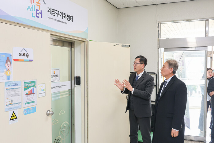 [인천=문찬식 기자] 윤환 인천 계양구청장은 17일 계양구가족센터를 방문해 리모델링 공사 추진에 앞서 현장 상황을 확인하고, 관계자들과 만나 애로사항을 청취했다.