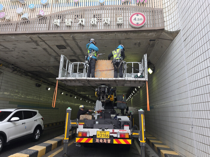안전점검은 자체 도로 순찰반을 통해 사전 위험 요소를 조치하고 지하철 역사 주변 등 침하 발생 우려가 있는 도로에 대하여 지반 조사(GPR) 실시하며 전문 업체를 통한 도로시설물 안전점검도 병행했다.