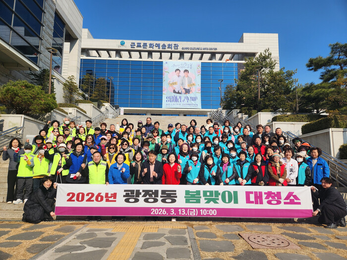 | ▲ 2026년 광정동 봄맞이 대청소 참가지들이 기념 촬영을 하고 있다 /사진제공=군포시 |