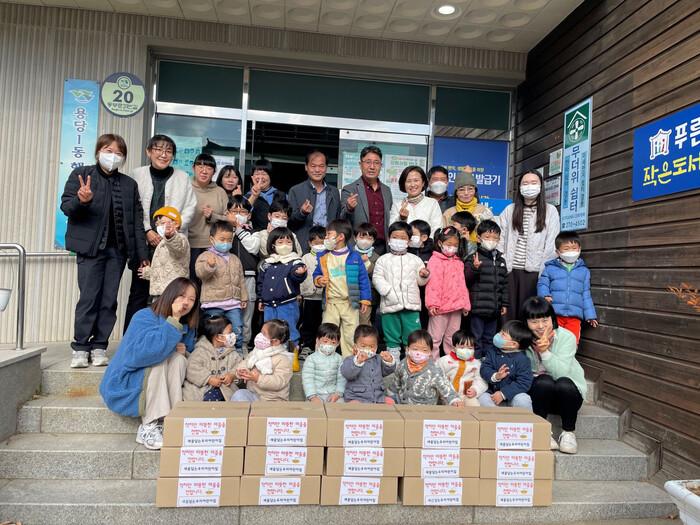 | ▲ 새꿈담는우리어린이집, 용당1동에 탄소중립 나눔 실천(사진=목포시 용당1동) |