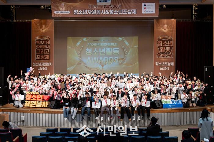 [광주=정찬남 기자] 광주광역시(시장 강기정)는 지난 29일 청소년수련원 청소년극장에서 ‘2025년 광주광역시 청소년활동 어워즈’ 시상식을 열었다.