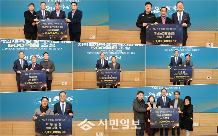 명현관 해남군수는 “해남군교육재단을 출범하고, 아동·청소년 교육 뿐만 아니라 성인을 위한 평생학습강좌, 성인 문해교육 등 폭넓게 지원하고 있다”며 “장학기금에 뜻을 모아주신 모든 분들의 마음을 소중히 담아 앞으로도 교육을 통해 더 나은 해남을 만들어갈 수 있도록 최선을 다하겠다”고 전했다.