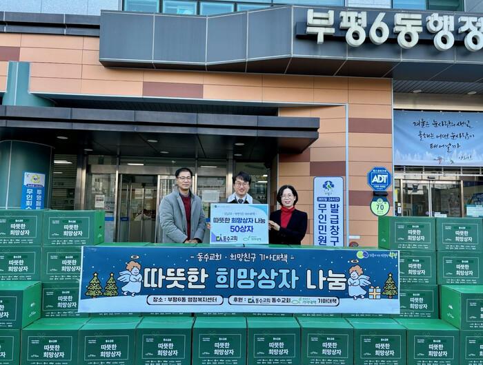 [인천=문찬식 기자] 인천 부평구 부평6동은 지난 20일 동수교회와 희망친구 기아대책으로부터 ‘따뜻한 희망상자’ 50상자를 기탁 받았다.