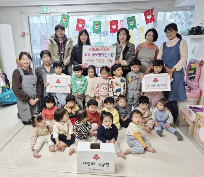 | ▲ 의왕시 청계동에 위치한 꿈샛별 어린이집이 12월 5일 원아들이 직접 모은 사랑의 모금함을 청계동 주민센터에 기부했다 /사진제공=의왕시 |