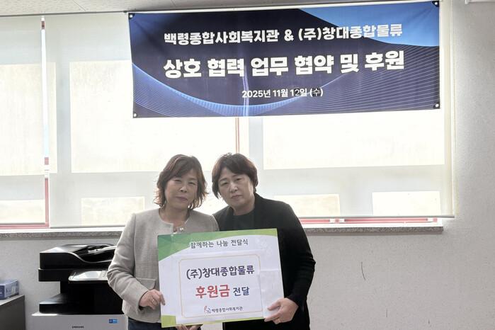 이날 ㈜창대종합물류는 협약과 함께 백령도의 복지 증진을 위한 후원금 전달도 진행하며, 지역사회와의 동반 성장을 다짐했다.