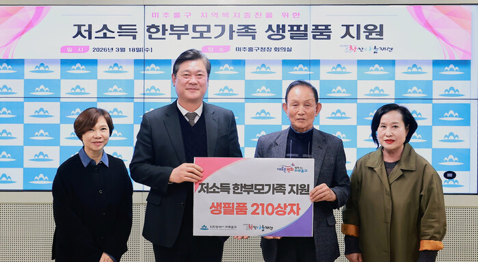 [인천=문찬식 기자] 인천 미추홀구(구청장 이영훈)는 18일 학산나눔재단(이사장 김영길) 지정후원금을 활용해 관내 저소득층 한부모가족을 위한 ‘생필품 꾸러미 지원 사업’을 추진했다고 밝혔다.