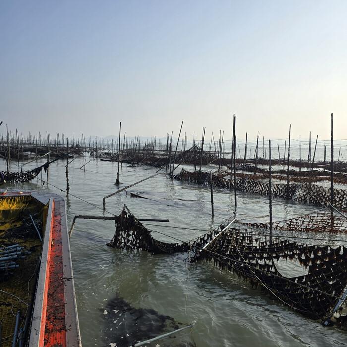 | ▲ 신안군 안좌면 해역 김 양식장 시설물 피해 현장(사진=어민제보) |