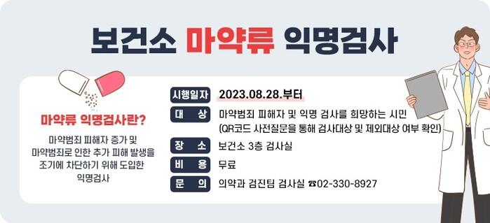 | ▲ 서대문구보건소 마약류 익명 검사 안내문. (사진=서대문구청 제공) |