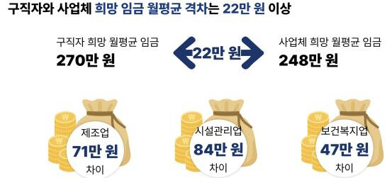 구직자와 기업체 제시 임금 월평균 22만원 격차, 맞춤형 정책지원 필요