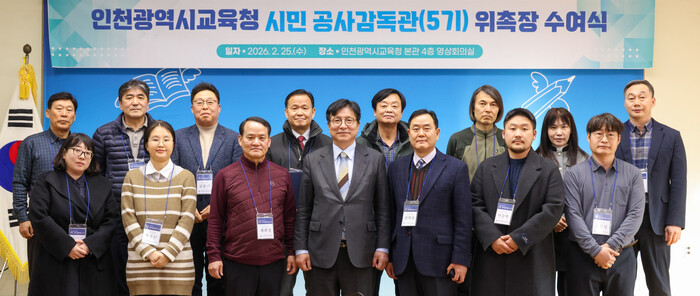 [인천=문찬식 기자] 인천시교육청(교육감 도성훈)은 지난 25일 시교육청 영상회의실에서 학교 시설공사의 투명성과 신뢰성을 높이기 위한 ‘시민 공사감독관 5기 위촉식’을 개최했다.