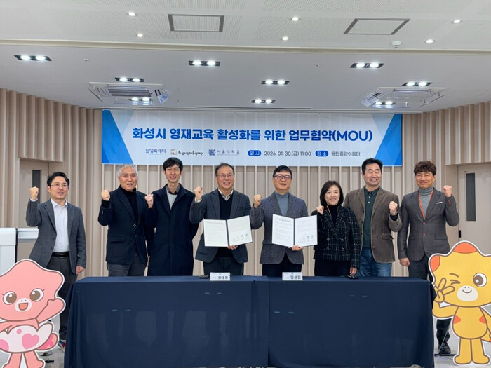 [화성=송윤근 기자] 경기 화성시인재육성재단은 화성시, 서울대학교 사범대학 교육협력센터, 서울대학교 대학원 과학교육과와 함께 창의융합 미래인재 양성 및 영재교육 활성화를 위한 업무협약(MOU)을 지난 1월 30일 체결했다고 밝혔다.