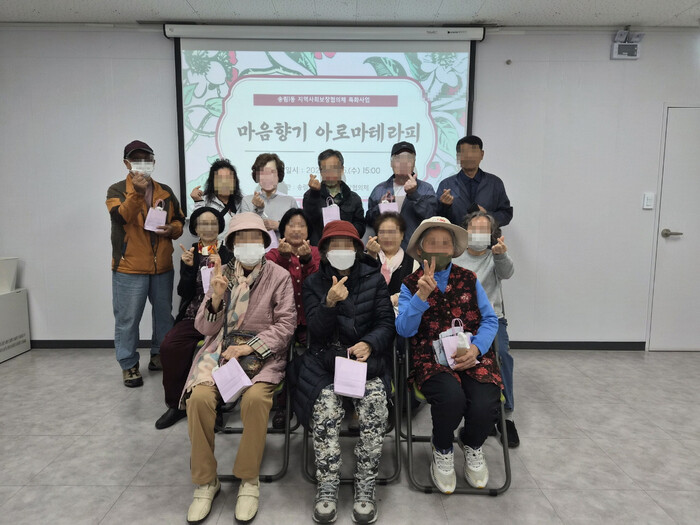 [인천=문찬식 기자] 인천 동구 송림1동 지역사회보장협의체(민간위원장 전성수)는 지난 15일 관내 저소득층 어르신들 및 사회적 고립 위기 주민을 대상으로 ‘마음 향기 아로마테라피’특화 사업을 진행했다고 밝혔다.