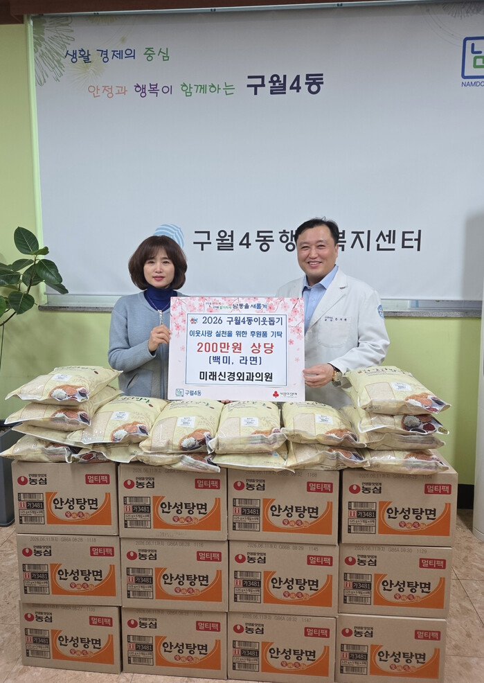 미래신경외과는 구월4동 행정복지센터에 백미 50포와 라면 30상자 등 200만 원 상당의 물품을 기탁했다.