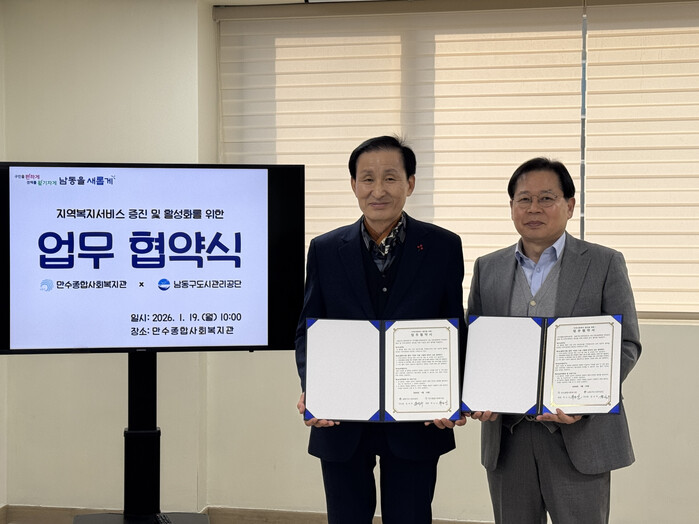 [인천=문찬식 기자] 인천 남동구도시관리공단은 최근 만수종합사회복지관과 지역사회복지 증진 및 취약계층 지원 강화를 위한 업무협약(MOU)을 체결했다고 밝혔다.