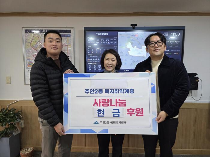[인천=문찬식 기자] 인천 미추홀구 주안2동(동장 최미희)은 지난 25일 녹색환경보전협회 인천지회와 인천85골프회로부터 각각 50만 원의 후원금을 전달받았다.
