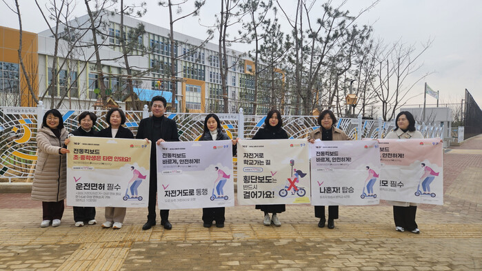 이번 점검에서는 학교 주변 교차로, 횡단보도, 안전 울타리 등 교통안전 시설물을 중점적으로 살폈다. 또, 중·고등학교가 함께 위치한 달빛초 일원에서는 ‘개인형이동장치(PM)’ 활용에 대한 인식 개선 캠페인도 함께 이뤄졌다.
