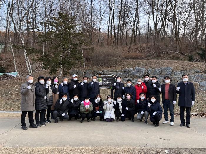 경기 남양주시 다산2동 주민자치위원회는 최근 황금산 문화공원에 ‘시와 함께하는 산책길’을 조성하고 제막식을 개최했다. 제막식에서는 다산2동장의 인사말을 시작으로 산책로 군데군데에 아기자기하게 설치된 시화를 감상했다. 사진은 이날 참여한 관계자들이 기념촬영을 하고 있는 모습. (사진제공=남양주시청)