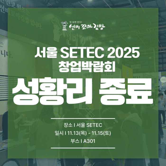 선비꼬마김밥 관계자는 “박람회에서 예비창업자분들이 직접 브랜드를 경험하며 운영 시스템의 간편함과 메뉴 경쟁력, 새 인테리어 콘셉트에 큰 관심을 보였다”며, “앞으로도 초기 창업자들이 안정적으로 사업을 시작할 수 있도록 다양한 지원을 더욱 확대해 나가겠다”고 전했다.