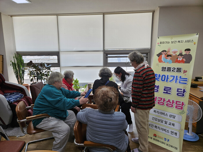 [인천=문찬식 기자] 인천 중구 영종2동 행정복지센터는 지난 23일 한라비발디 경로당에서 ‘찾아가는 경로당 건강상담’을 실시하며 지역 어르신들의 건강 증진에 나섰다.