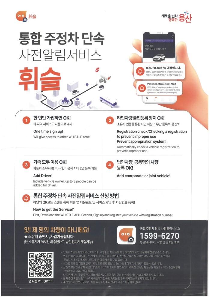 | ▲ 통합 주정차 단속 알림서비스 홍보물. (사진=용산구청 제공) |