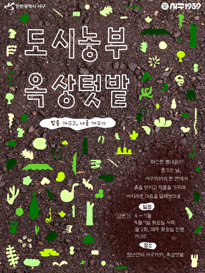 [인천=문찬식 기자] 인천 서구(구청장 강범석)는 청년들의 건강한 여가활동과 커뮤니티 형성을 지원하기 위한 ‘도시농부, 옥상텃밭’ 프로그램의 상반기 참여자를 모집한다고 밝혔다.