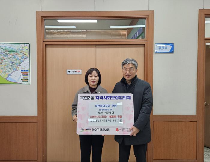 [인천=문찬식 기자] 옥련중앙교회(담임목사 한종근)는 지난 22일 성탄절을 맞이해 인천 연수구 옥련2동 지역사회보장협의체(공동위원장 김영미, 박인규)에 100만 원 상당의 농협하나로상품권을 기탁했다.