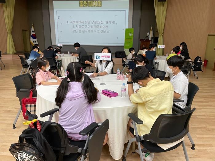 | ▲ 지난 25일 구청 대강당에서 열린 '기후변화 인재양성 연구동아리' 소통캠프에서 학생들이 프로그램에 참여하고 있다. (사진제공=서초구청) |