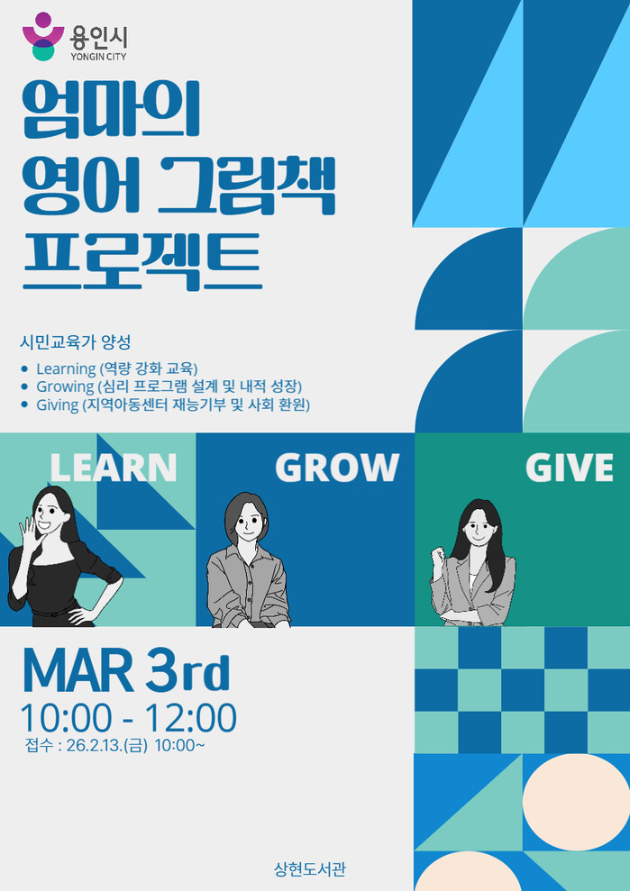 [용인=오왕석 기자] 용인특례시(시장 이상일) 상현도서관은 오는 13일부터 선착순으로 ‘엄마의 영어 그림책 프로젝트’ 참여자 20명을 모집한다.
